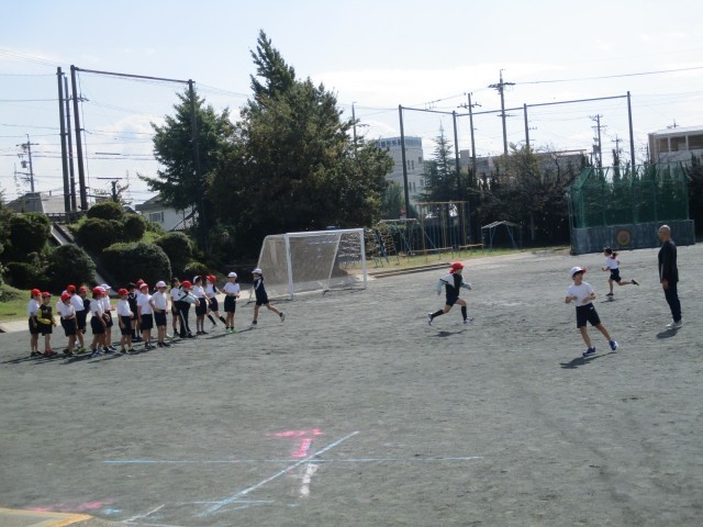 今日は過ごしやすい1日でした。青空のもと、体育の授業では、伸び伸びと元気に体を動かしていました。