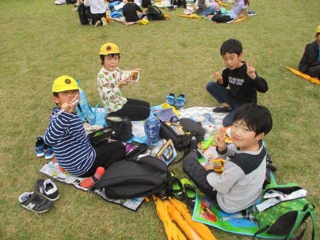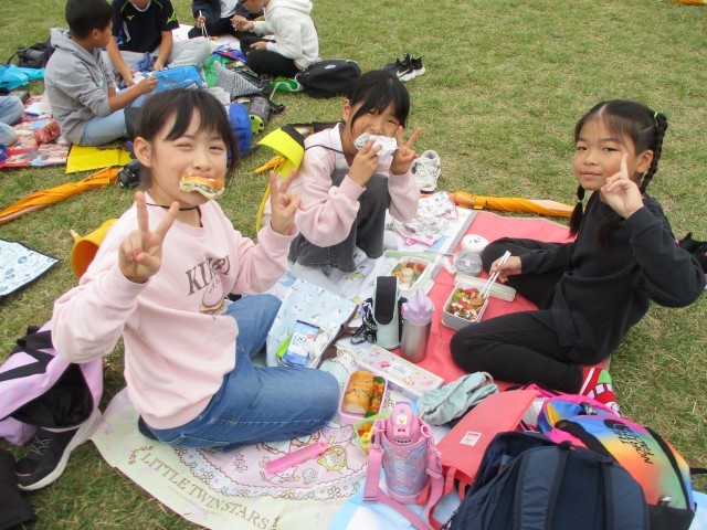 はと屋の後は堀内公園に移動してお弁当を食べました。公園では3年生全員対先生で鬼ごっこをしました。大人数での鬼ごっこはとても楽しそうでした。たくさん走った後は待ちに待ったお弁当です。お家の人に準備してもらったお弁当を嬉しそうに食べていました。早朝よりお弁当を準備してくださりありがとうございました。