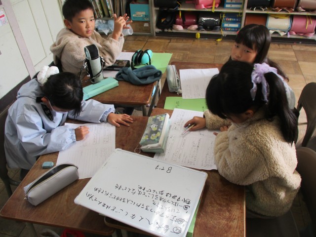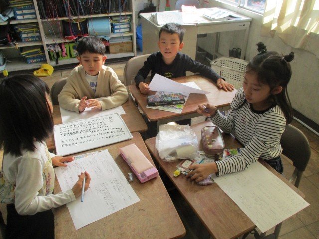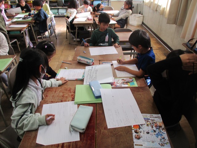 11月17日に、2年生は町探検に出かけます。今日は、お店の人にどんなことをインタビューしたいかグループで考えました。