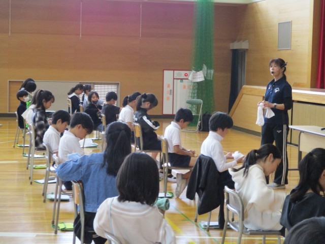 講師の先生をお招きして、総合で学習している福祉についてのお話や正しい姿勢について教えていただきました。ありがとうございました。