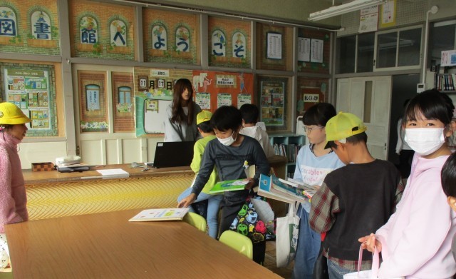 今週から「どんぐり読書週間」が始まっています。図書委員会や図書館司書のアイデアで楽しい催しも行われています。今回は、先生たちがおすすめする本が袋に入った「ひみつの本」が特に人気です。袋の表にはおすすめする本の紹介が書かれていますが、袋を開けるまでは、どんな本が入っているかわかりません。図書館に来ていた子どもたちから「ひみつの本がなくなると思って、一番に来た!」「〇〇先生のおすすめの本がおもしろかった!」などと教えてもらいました。