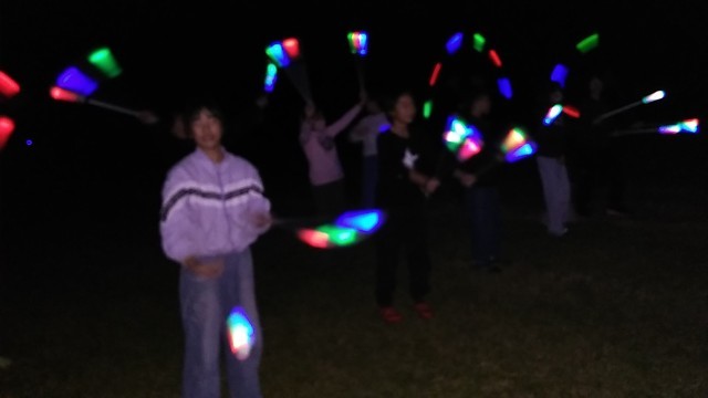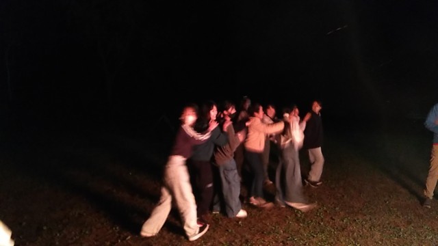 夜の訪れとともにキャンプファイヤーが始まりました。自然の中に身を置いて、火を囲み、みんなで楽しい時間を過ごしました。フィナーレのトワリングは素晴らしく、感嘆の声が聞こえました。