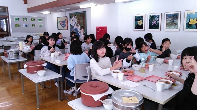 食堂でお昼ご飯をいただきました。この後は退所式となり、少年自然の家ともお別れです。感謝して味わっていただきました。