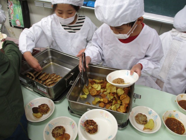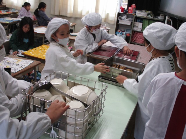 給食当番仕事を毎日頑張っています。着替えから準備まで、とても早く行うことができるようになりました。どの給食当番の仕事ももう完璧です!