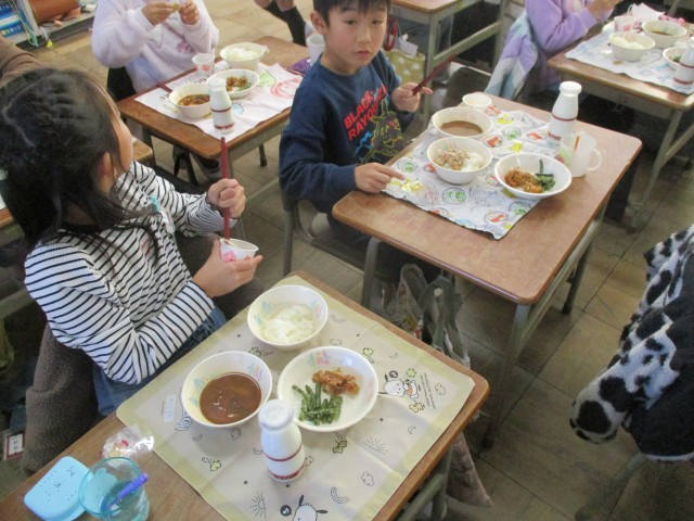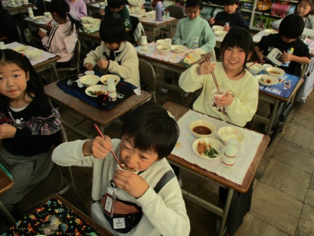 今日の給食に、珍しく納豆が出ました。献立を見て、ワクワクする子が多くいました。