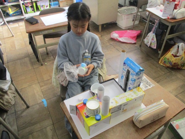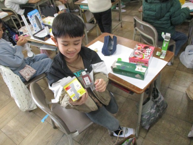 自分でつくった「小さなともだち」が喜ぶお家はどんなお家なのか、箱を触りながらイメージを膨らませました。