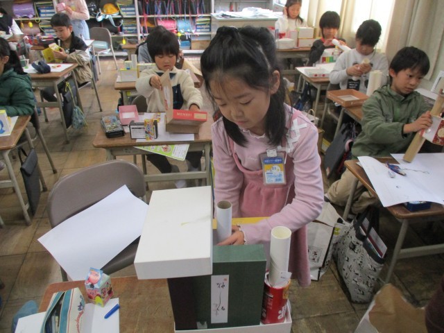 今日の図工は、作品展に向けて「ともだちハウス」を作り始めました。