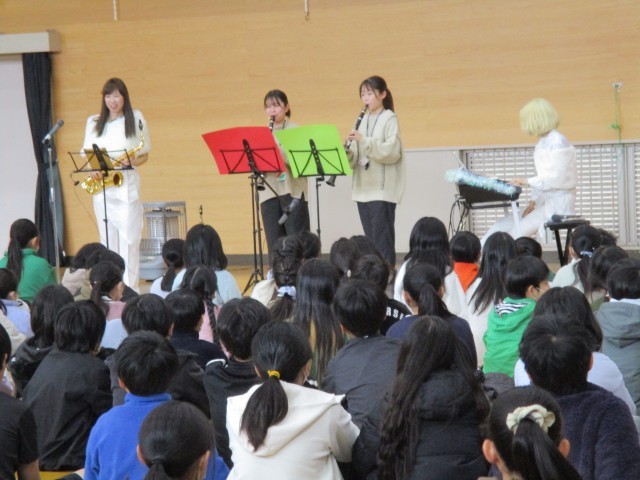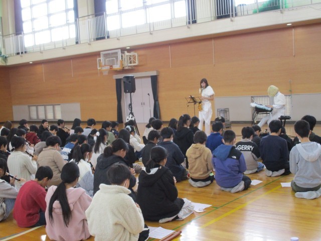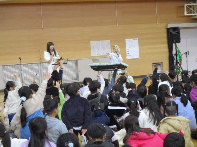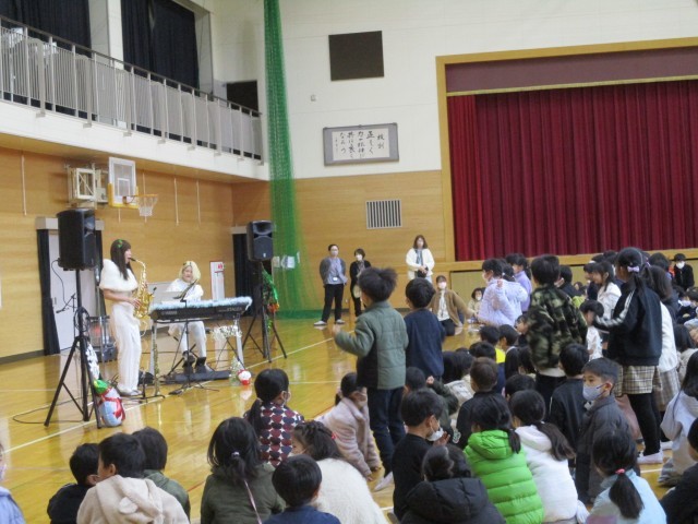 サックス奏者の浅井ゆかりさん、電子オルガン奏者の太田英美さんをお招きして、音楽鑑賞会を行いました。それぞれの学年のリクエスト曲や校歌も交えながら、楽しく美しい音楽の世界に浸る時間となりました。高学年の部では、スペシャルゲストとして本校の5・6年担任がクラリネットで演奏に参加をしました。子どもたちは驚きながらも嬉しそうに聞き入っていました。