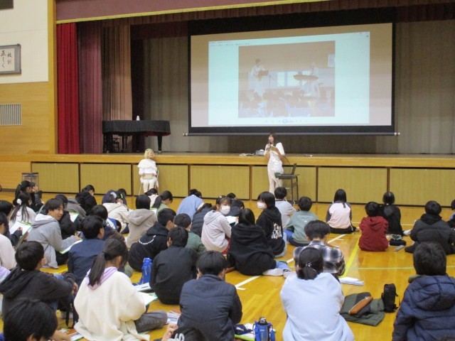 お二人に来ていただくのは3年目となりますが、常に新たな自分自身になることを追い求めていらっしゃるお二人だからこそ、そのお話や演奏には新しい発見や感動があります。ライブで音楽を聴き、お話に耳を傾ける時間は、子どもたちの成長にとってかけがえのない時間であると改めて感じました。お二人は何度も「ありがとう」と子どもたちに言ってくださいました。お二人の感謝の気持ちを大切にし、伝える姿は、きっと子どもたちの心に残ったことと思います。このご縁を大切に、子どもたちがさまざまな場面で、感謝の思いをもつことができるような心を育てていきたいと思います。