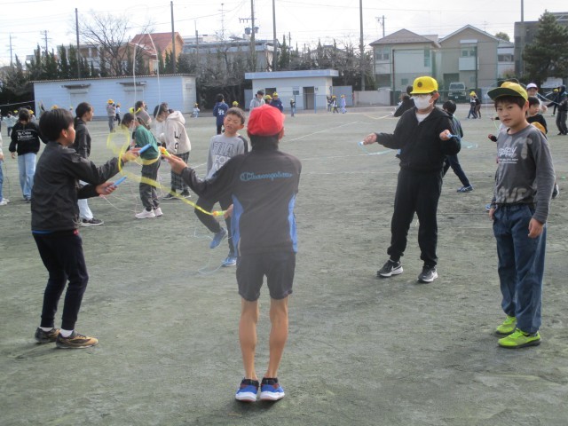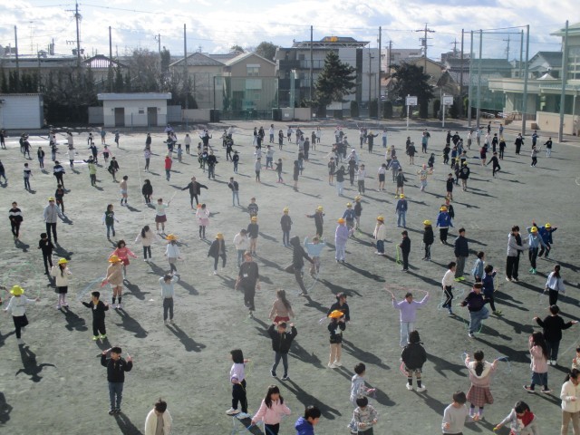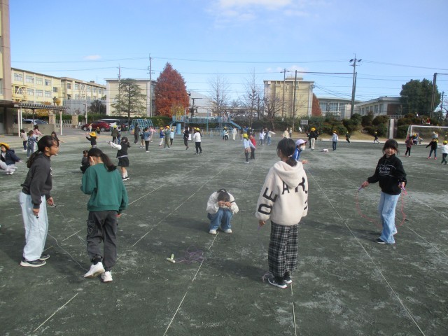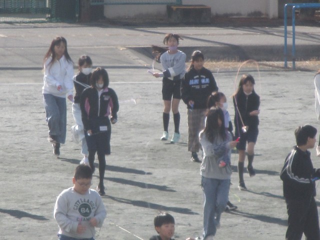 昨日から雪がちらつく寒さの中、5年生は元気に学校生活を送っています。中間放課には、多くの児童がリズムなわとびに取り組み、寒さを吹き飛ばすようにジャンプする姿が見られました。昼放課には、技の上達を目指して練習を続ける児童や、鬼ごっこを楽しむ児童など、それぞれが友達と充実した時間を過ごしています。