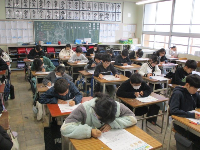 2学期も終わりが近づき、学習のまとめに向けて子どもたちの姿にも力が入っています。今日は算数のテストが行われました。内容は「単位量あたりの大きさ」や、物事の見方や考え方について問われる問題でした。日常生活にもつながる内容ということもあり、一つひとつの問題と真剣に向き合い、集中して取り組む子どもたちの姿が印象的でした。