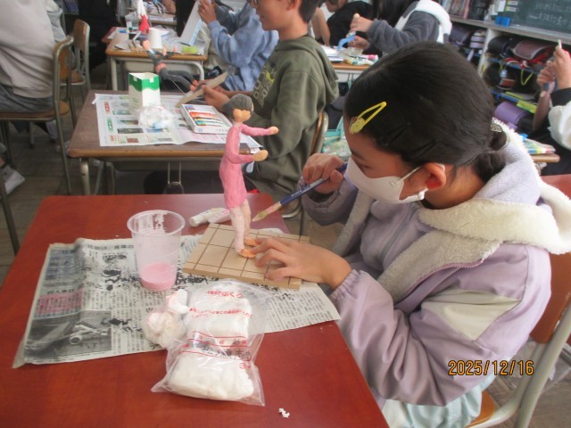 いよいよ、人形の体に服を着せる様子が増えてきました。