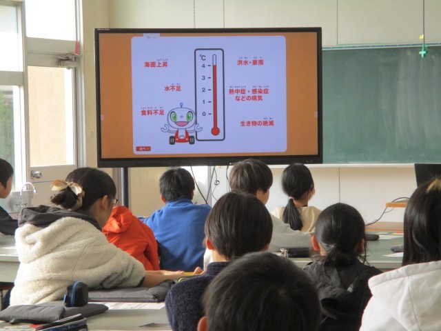 子どもたちは4年生の総合的な学習の時間に、SDGSについて学習をし、全校への啓発活動を行ってきました。物事を見るとき、環境という側面、社会科で学習をした工業生産の側面という両面から物事を見て、自分たちの生活にはどちらも大切であり、どのように折り合いをつけていくのか、また、その両立のためにどんな技術開発をしていくとよいのか考えることができたと思います。これからも、物事を一面からだけで見ることなく、いろいろな角度から見ていく姿勢を大切にしてほしいと思います。講師の皆様、ありがとうございました。