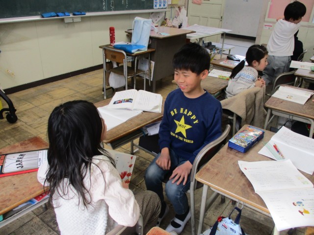 詩の暗唱発表会に向けて練習をしました。友達に覚えているかを確認してもらったり、工夫していることについてアドバイスをもらったりしました。暗唱で発表というと少し緊張してしまいますが、友達と一緒だと楽しく覚えたり工夫したりする様子がみられました。本番が楽しみです。