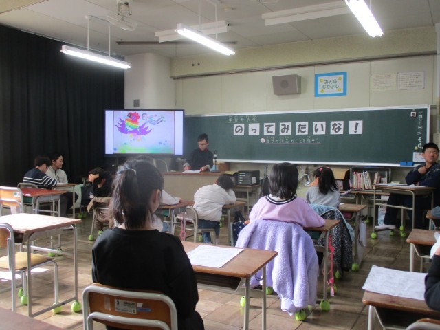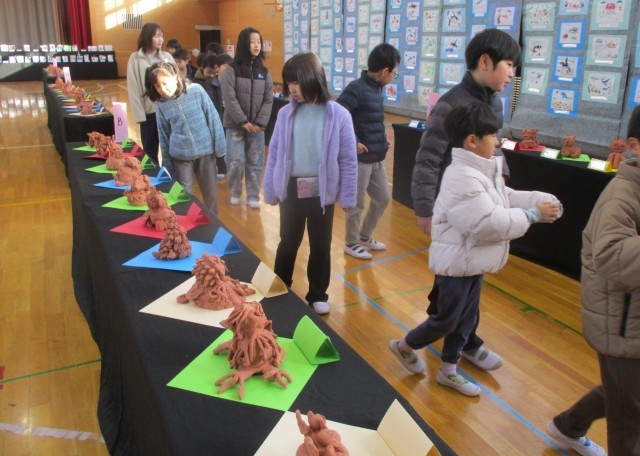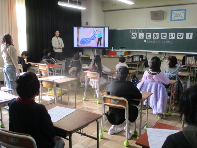 ご参観ありがとうございました。作品は色画用紙をちぎることも、動物を描いて貼ることも、背景を好きな色でスプレーすることも、とても楽しんで取り組んでいました。最後に自分と動物を組み合わせるときは、どこに乗せようか…ぶら下がるようにしようか…などといろいろ考えていました。みんなとてもステキな作品になりました。1月24日~27日まで、「一宮手をつなぐ子らの教育展」(一宮スポーツ文化センターにて)にも展示されます。ぜひご覧ください。