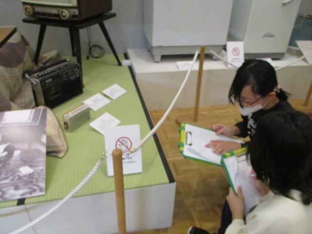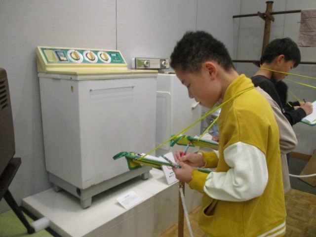 博物館では昭和100年の企画展が開催されていました。今から50~70年前や戦前の品々がたくさん展示されていました。「これは今の時代の何だろう?」「どうやって使うのかな?」「何で作られているんだろう?」と黙々と鑑賞しメモをとっていました。知りたいことを博物館の方に丁寧な言葉で質問する姿もみられました。
