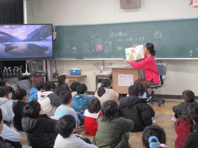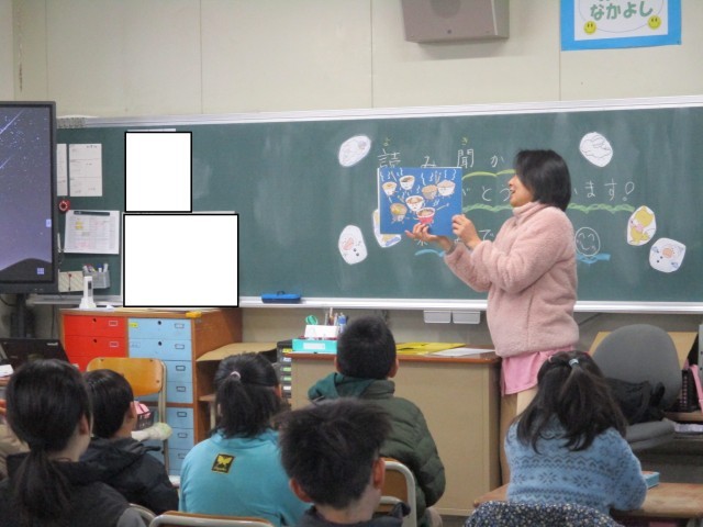今朝は、読み聞かせボランティア「リボン」さんが、読み聞かせに来てくださいました。外は寒さを感じますが、教室の中は、読み聞かせによる温かな時間が流れていました。ページがめくられるワクワク感、お話の世界にいざなう声色が、子どもたちの心に温かく沁みとおっていったようでした。お話とともに、リボンの皆さんの温かな子どもたちを思うお心もいただけたかけがえのない時間となりました。リボンの皆さん、ありがとうございました。