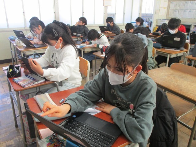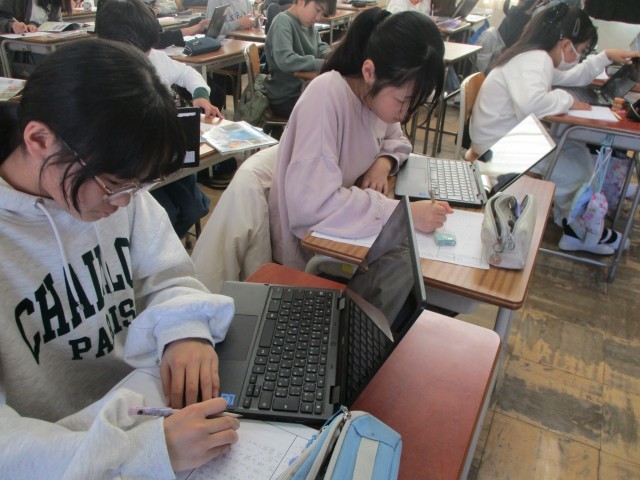 いくつかの国の中から自分が調べたい国を選択し、ICT機器や教科書を使い、情報を集めてまとめました。