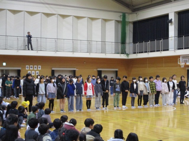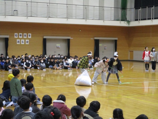 6年生を送る会が行われました。5年生は、これまでの感謝と4月からリーダーとしてがんばる気持ちをクイズや演奏に込めました。