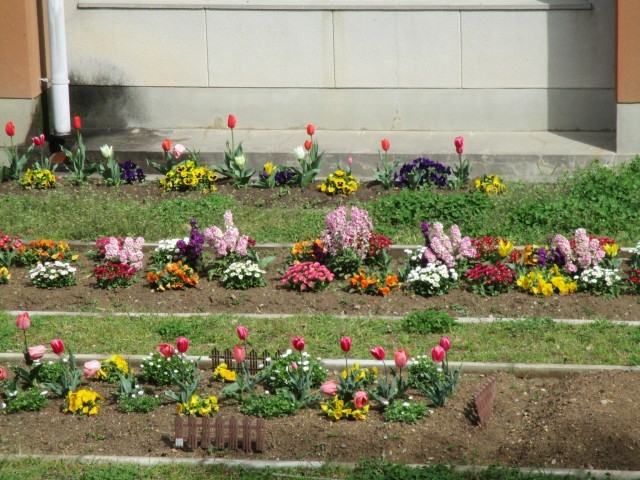 雨上がりの今日は、春の花が輝いて見えます。学校では、新年度を迎える準備が着々と進んでいます。