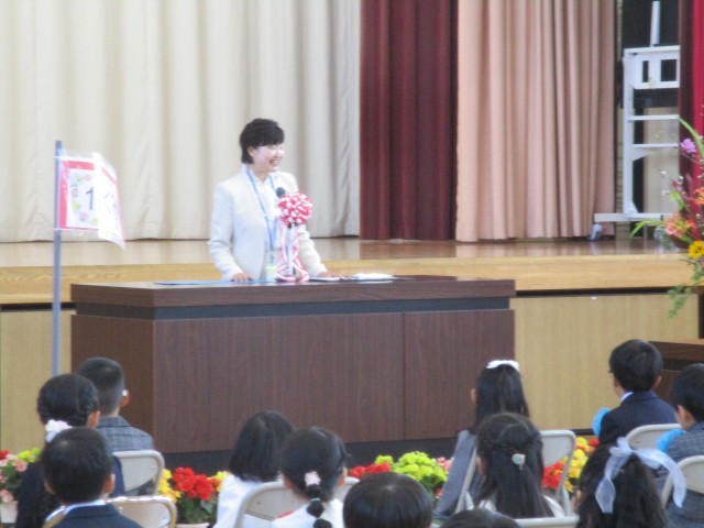 今日はすばらしい天気のなか、入学式が行われました。99名のみなさんが元気よく式に参加し、向山小学校の新しい仲間となりました。勉強や運動など、さまざまなことに楽しく取り組んでいきましょうね。