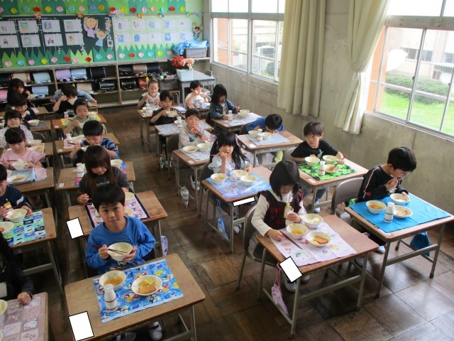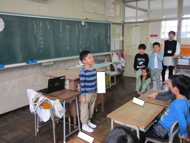 初めての休み明け月曜日です。朝、昇降口で待っていたら元気な声で笑顔で登校する子が多くいて嬉しい気持ちになりました。今日は自己紹介をして自分の顔を日直カードに書きました。クーピーの使い方も覚えました。給食の準備も先週よりスムーズにできました。自分で出来ることが増えて嬉しいね。