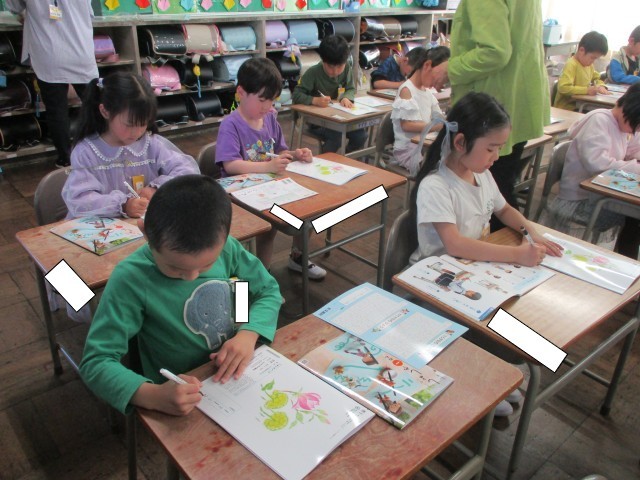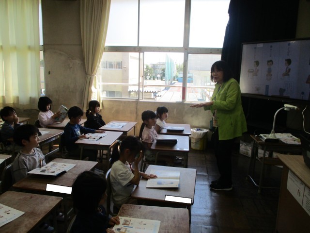 入学式から1週間がたちました。今日は視力検査がありました。保健の先生の話をしっかりと聞き検査をすることができました。書写の時間は書写の先生と一緒に授業をしました。今日は名前ペンを使って自分の名前を書きました。今日は時間割をお渡ししました。明日の持ち物は時間割をみて準備しましょう。