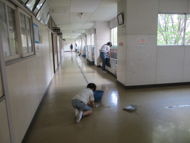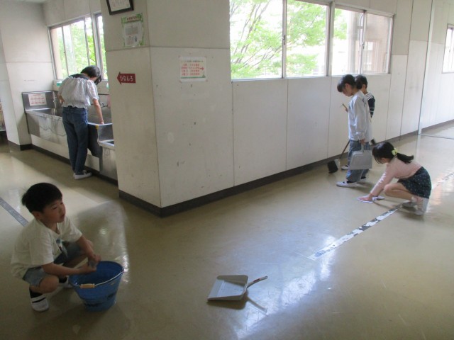 2年生と6年生が同じフロアの清掃に取り組んでくれています。熱心に床を拭く2年生の様子を6年生が見守ったり、6年生は気が付いたところを進んできれいにしたりと、それぞれが互いの様子を慮りながら、時間いっぱいまで黙掃に励む姿はすてきです。きれいになると同時に、それぞれの思いがこめられたきれいな空間となりました。熱心に取り組み、きれいにしてくれて、本当にありがとう!