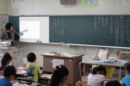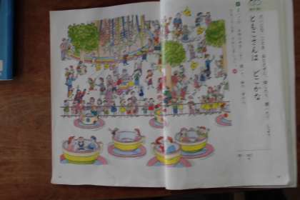 国語では、大事なことを落とさずに、「迷子のお知らせ」ができるよう案内の文章を考えさせました。迷子なので「名前」「年齢」「男女」「服の色や形」などを絵から調べて、文章にしました。