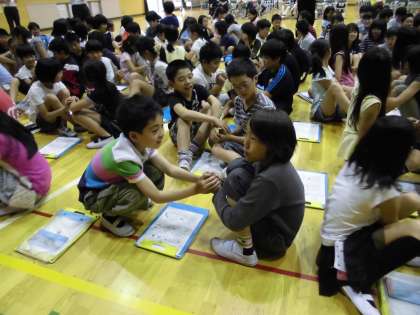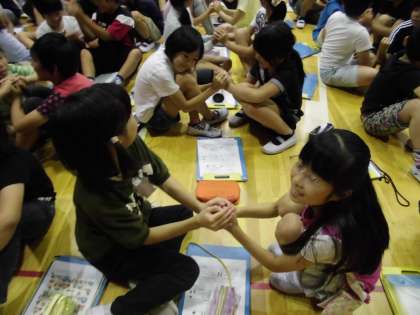 心はきもち ぬくもりを伝えるワークを行いました。児童たちは友だちに自分の手を包んでもらい、とても嬉しそうな表情でした。