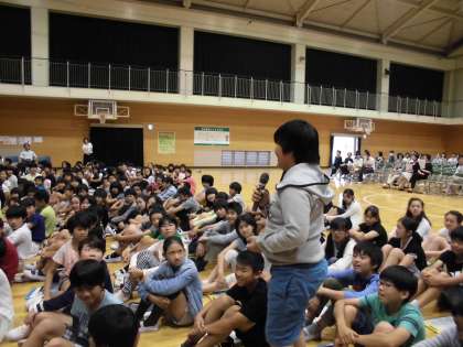 テーマは、大切なぼく・わたし〜自分の気持ちを上手につたえよう〜です。本校の養護教諭から児童保健アンケートの結果報告をしました。設問内容は「自分のことが好きですか」「自分の長所をいえますか」「生まれてきてよかったと思いますか」「相手の気持ちを考えて、話したり行動したりできますか」です。児童たちはアンケート結果を真剣な態度で聞くことができました。