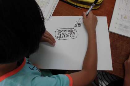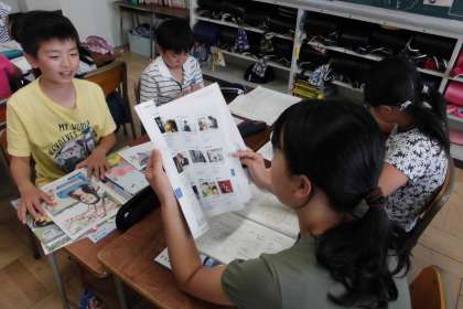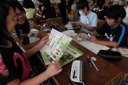 一宮市を紹介するパンフレットを作るという学習をしています。紹介パンフレットを作るためには、まず、一宮市のことを知らなくてはなりません。様々な資料を集め、関係図にしながら紹介の内容を検討しました。