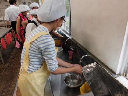 ゆで卵の授業を行いました。卵をきれいに洗いました。菜箸で卵が割れないように,注意しながらまぜました。黄身が真ん中にきて,上手にゆで卵ができました。