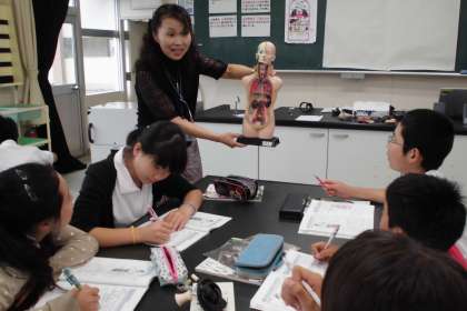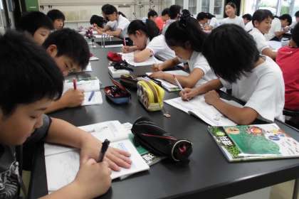 人の体のはたらきについて学習しています。今日は、心臓のはたらきや血液の流れについて、人体模型を使って説明しました。血液のはたらきについても説明し、後半は、DVDを視聴をしました。