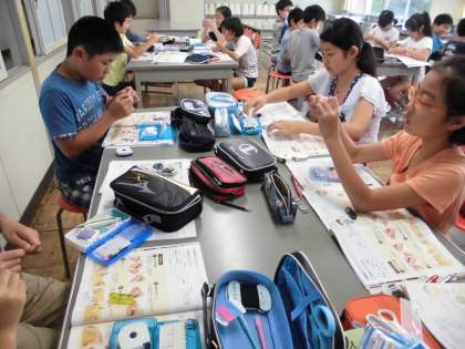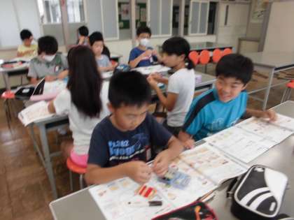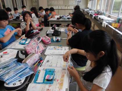 5年生は裁縫の授業を行いました。初めて使う裁縫道具に入っている道具の名前と使い方について、クイズ形式で学習しました。糸を針に通してみました。これからの授業でできることを増やしていきましょう。