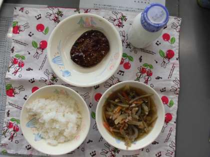 沢煮わん 照り焼きハンバーグ ご飯 牛乳