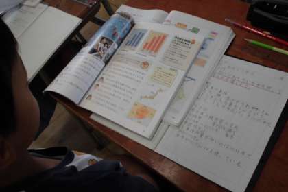 各家庭で使う水は、一日当たりどれくらい使われているのか資料を使って調べました。資料のグラフを読み取るための単位や調べた年など、様々な情報の読み取り方について理解させました。