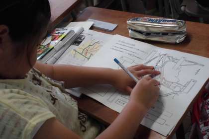 一宮市を通っている鉄道や道路について調べました。国道22号や155号、それに、高速道路などについても調べました。習っていない漢字がたくさん出てきましたが、書けるように練習しながらプリントに書き込みました。