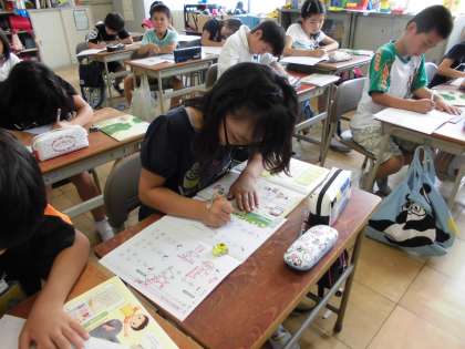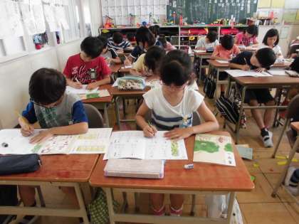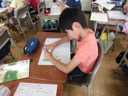 「折れ」「曲がり」「はらい」について学習しました。一文字一文字を丁寧に書くことができました。