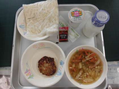 あんかけきしめん 愛知のキャベツ入りつくね ご飯 牛乳 みかんゼリー