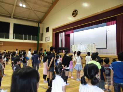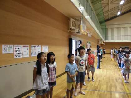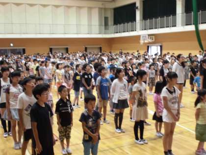 屋内運動場に素敵な歌声が広がりました。向山小学校の児童が心ひとつにして歌うとこんなにもいいんですね。感動しました。児童たちは大きな声で歌うことができました。