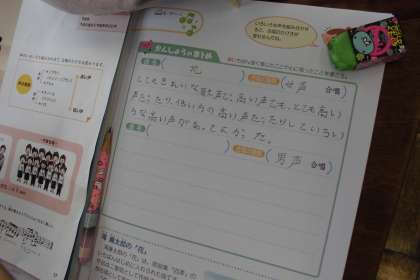 女性二部合唱で「花」という曲を鑑賞しました。とても美しい声で、子どもたちもうっとり聞いていました。「はるのうららの 隅田川 上り下りの ふなびとが」と、その光景を子どもたちは、どのように想像して聞いてくれたのでしょう。