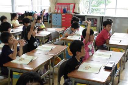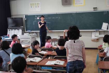 アサガオの成長をよく観察して、詳しく書くための学習をしました。まず、詳しく書くためには、どうしたらよいか話し合いました。よく見るために、どこをみるか、何を見るか。また、どこを触るかなど、くわしく書くための取材方法を理解させました。