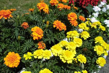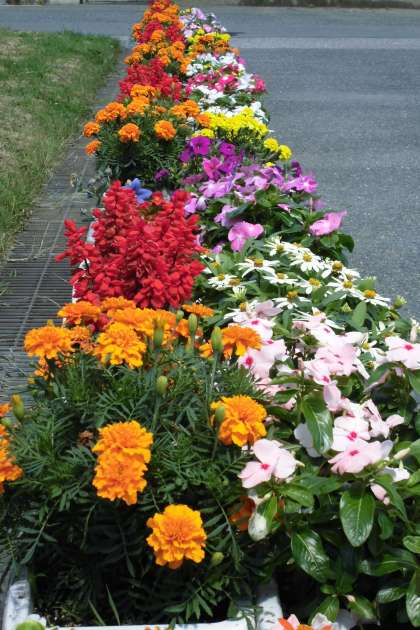 マリーゴールドやサルビア、日々草にペチュニアと夏の花が美しく咲いています。子どもたちの過ごす学校は、ごみ一つなく、季節の花が咲き、そして、安全で美しい環境でなければなりません。このことは、子どもたちの健全育成に大きな関係があります。