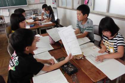 身のまわりにある記号について調べ、報告する文章を書くという学習をしています。記号は、何を伝えようとしているのか、また、伝えるためにどのように工夫をしているかなどについて調べ、文章にまとめました。