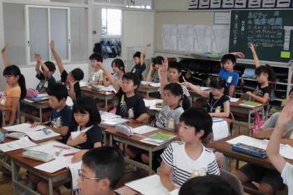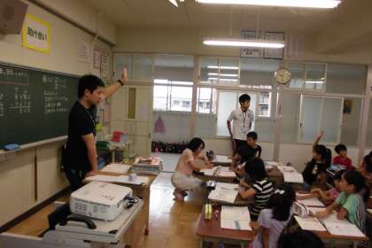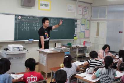 4けたの筆算について説明しました。繰り上がりもくり下がりも、3けたの場合と同じであることを理解させました。子どもたちは、さっそく、練習問題に取り組みました。