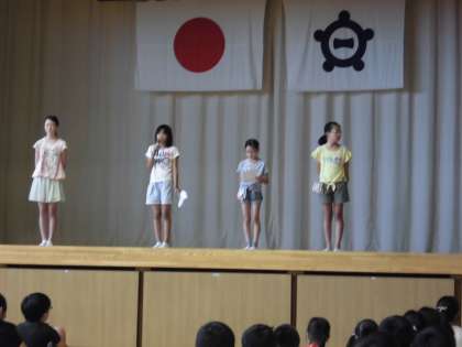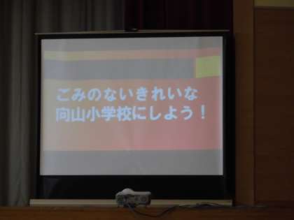 児童会からは「クリーン活動強化月間」の提案がありました。向山小学校が、ゴミひとつない綺麗な学校になるように、掃除をしっかり行いましょう。という呼びかけがありました。今日からの清掃活動やゴミを見たら拾う。という日頃の心がけを持ちましょう。