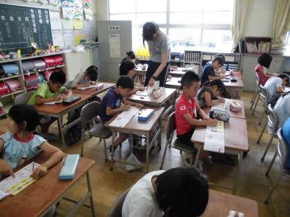 漢字の筆順を確認しました。漢字ドリルを使い、同じ漢字を何度も書きました。えんぴつの持ち方や文字を書くときの姿勢にも気を付けて、ていねいに書くことができました。