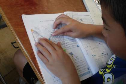 方眼紙を使って、平行な直線や垂直な直線を引く練習をしました。「定点を通る」という条件が加わった問題にも挑戦しました。
