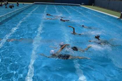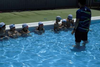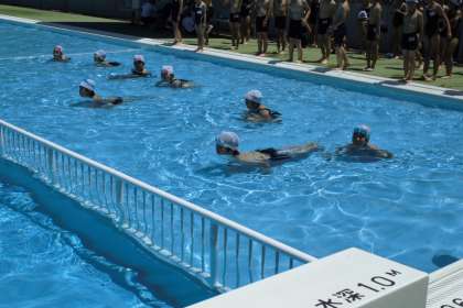 目標別に3つのグループに分かれて練習しました。日差しは、暑く、水温も比較的高く、子どもたちにとって楽しい授業となりました。